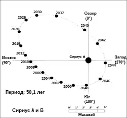 ![]() Сіріус B (знизу ліворуч) поруч з А. Зображення телескопа «Хаббл». | |