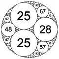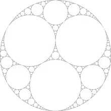 Почнемо з трьох кіл, кожне з яких є дотичним до двох інших. Далі рекурсивно додамо до наявної фігури кола, кожне з яких дотикається будь-яких трьох вже побудованих кіл. На першому кроці ми додамо два, на другому шість і так далі.