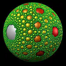 - Тривимірний еквівалент сітки Аполлонія - Аполлонієве пакування сфер.