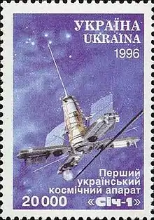 Поштова марка «Перший український космічний апарат „Січ-1“» (1996)