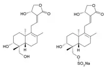 | 9-dehydro-17-hydro-andrographolide and sodium 9-dehydro-17-hydro-andrographolide-19-yl sulfate | |