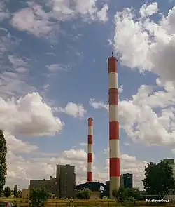 Видалення продуктів згоряння відбувається за допомогою димарів висотою 250 метрів та 200 метрів, лише для котла EOG-35 використовується окрема суттєво нижча споруда висотою 61 метр.[1][2][3][4][5][6][7]