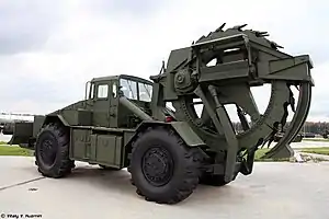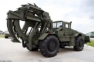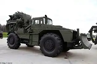 траншейна машина колісна на базі МАЗ-538 (КЗКТ-538 ДК для ТМК-2, чи К-703 для ТМК-3) Роторний бесковшовий екскаватор з допоміжним бульдозерним обладнанням Схема: Колісна формула 4х4 |