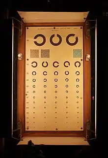 Використовується лікарями-фахівцями при консультації пацієнтів для визначення ступеня гостроти зору. Складається з різноманітних символів, розташованих по рядках таблицею з поступовим зменшенням їх розміру.