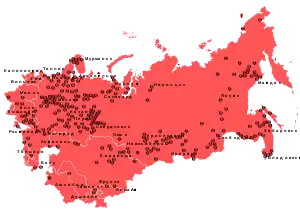 Мапа розташування концтаборів ГУЛАГу