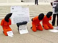 Умови утримання полонених в Таборі Гуантанамо та відмова поширити на них правила Женевської конвенції викликали хвилю протестів по всьому світі. Такі організації, як Міжнародна амністія та Г'юман Райтс Вотч, організували акції протесту в різних країнах. 2 травня 2005 року правозахисні організації подали в суд на міністра оборони США Дональда Рамсфельда, звинувативши його в тортурах та знущанні з полонених. Міжнародна Амністія назвала Табір у Гуантанамо «Гулагом нашого часу». Навіть американська преса піддавала критиці адміністрацію Джорджа Буша і закликали його закрити в'язницю, яка стала справжньою ганьбою США. Низка світових лідерів, включно з союзниками США, такими як Велика Британія, також закликали США закрити цю в'язницю.