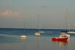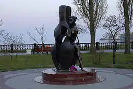 | Старі кам'яні сходи, вид із Грецької вулиці в бік Таганрозької затоки і Пушкінської набережної. | Вид на Пушкінську набережну від верхньої частини кам'яних сходів. | Скульптурна композиція «Роман із контрабасом», присвячена однойменному чеховському оповіданню. | Яхти Таганрозької затоки Азовського моря. Вид з Пушкінської набережної. |