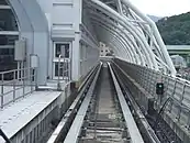 Колія для потягів з шинним ходом біля станції «Taipei Nangang Exhibition Center»
