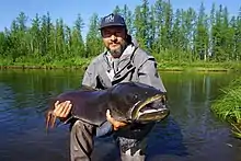 Найбільший представник родини лососевих, досягає довжини 1,5-2 м і ваги 60-80 кг.