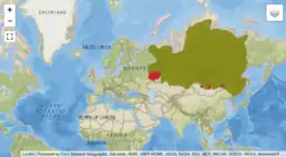 ![]() Зелений: сучасний ареал. Червоний: колишній ареал. | ||||||||||||||||||||||||||||||