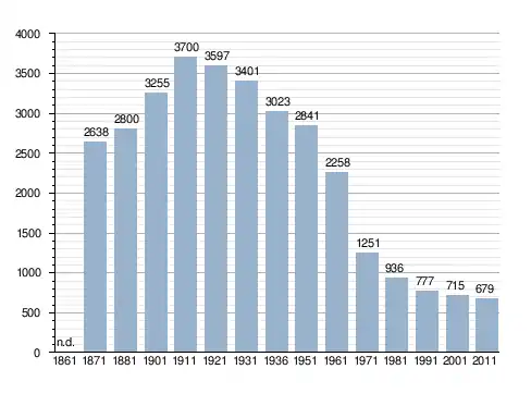Станом на 31 грудня 2014 року в муніципалітеті офіційно проживав 61 іноземець з 14 країн, серед них 28 громадян країн Євросоюзу.[4]