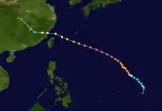 Увечері 26 червня над Маршалловими островами утворилося тропічне обурення.[1] Упродовж наступних п'яти днів циклон повільно розвивався та дрейфував над Тихим океаном. 2 липня JTWC, повідомив про формування тропічного циклону у 237 морських милях від Гуаму. Того ж дня система швидко розвинулась до тропічної депресії та отримала ідентифікатор 10W.[2][3] 3 липня про це вже оповістив JMA.[4][5] Сприятливі умови навколишнього середовища: помірний вертикальний градієнт вітру, температури поверхні океану між 30 і 31 °C. За інформацією JMA, 4 липня 12:00 UTC система посилилась до тропічного шторму.[6] Пізніше це підтвердив і JTWC.[7] 5 липня, після того як циклон ударив по Гуаму, JMA підвищив його до жорсткого тропічного шторму зі постійними вітрами в 93 км/год та мінімальний атмосферним тиском у 984 мбар (738,06 мм рт. ст.). Упродовж дня система посилилась інтенсифікацію у зв'язку зі сприятливими умовами.[8][9] І вже в другій половині дня JTWC та JMA класифікували систему як тайфун.[10] 6 липня циклон досяг свого піку з максимальними 1-хвилинними тривалими вітрами у 260 км/год. JTWC та CMA класифікували його як супертайфун.[11] Починаючи з 8 липня циклон увійшов до зони з низькою температурою поверхні океану й почав слабшати. 11 липня вирував над Східним Китаєм, провінція Фуцзянь, як тропічний шторм зі постійними вітрами в 155 км/год і атмосферним тиском у 955 мбар (716,31 мм рт. ст.), а пізніше повністю розпався.[12]