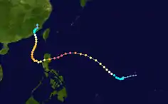 ![]() Мапа руху та інтенсивності тайфуну Мегі за шкалою Саффіра-Сімпсона. | ||||