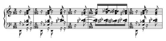 У випадку додавання один до одного двох або більше неоднорідних розмірів утворюються такти з мішаним розміром, наприклад або , наприклад: