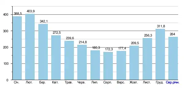 | Середньорічний стік | 264 м³/с (за 335 км від гирла)[3] |