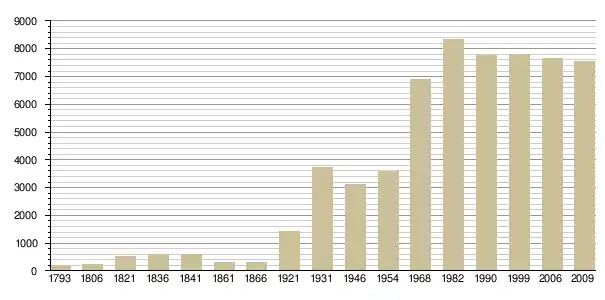 Динаміка населення (Ehess[4] і INSEE[5] ):