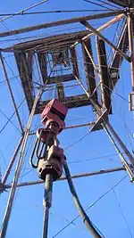 - кронблок — Нерухома частина талевої системи, зокрема поліспасту.