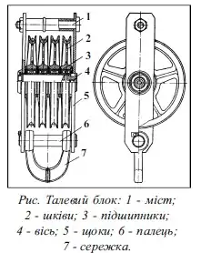 Талеві блоки всіх типорозмірів конструктивно відрізняються один від одного лише числом канатних шківів.