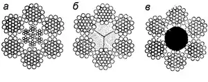 Талеві канати для експлуатаційного і глибокого розвідувального буріння виготовляються в трьох виконаннях, що розрізняються за типом використовуваних сердечників: