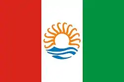 Прапор талиського національного руху [7] - Червоний, із золотим сонцем посередині й горизонтальними білими смугами вздовж верхньої і нижньої кромки, з зеленими просвітами посеред кожної з двох білих смуг; заснований для «Союз Талишських молоді» в Москві[5][9].