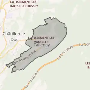 - Розташування муніципалітету Таллене на мапі Франції та сусідні муніципалітети
