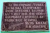 Меморіальна дошка на вокзалі на честь Якуба Коласа, який перебував проїздом у Тальці
