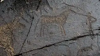 Стародавні кам'яні різьблення (петрогліфи), знайдені в невеликій ущелині в Тамгали