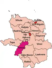 - Аавере (Aavere), Алупере (Alupere), Араскі (Araski), Ассамалла (Assamalla), Вадікюла (Vadiküla), Ваянґу (Vajangu), Вигмету (Võhmetu), Вигмута (Võhmuta), Вістла (Vistla), Кадапіку (Kadapiku), Каева (Kaeva), Керґута (Kerguta), Койдукюла (Koiduküla), Коплітаґузе (Koplitaguse), Куйе (Kuie), Кулленґа (Kullenga), Курсі (Kursi), Леммкюла (Lemmküla), Локса (Loksa), Метскаеву (Metskaevu), Найстевялья (Naistevälja), Пидранґу (Põdrangu), Пійзупі (Piisupi), Поркуні (Porkuni), Савалдума (Savalduma), Саувялья (Sauvälja), Тюрьє (Türje), Уудекюла (Uudeküla), Ярвайие (Järvajõe), Ярсі (Järsi).