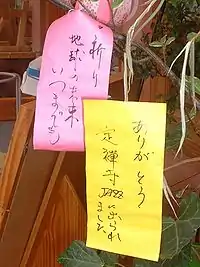 В день свята перед дверима будинків і воротами садів підвішують бамбукові гілки, до яких прикріплюють довгі тонкі паперові смужки, на яких написано різні побажання. Вважалося, що це допоможе стати майстерним каліграфом або поетом, оскільки Танабата ще й покровителька мистецтв. Їй же робиться підношення у вигляді вирізаних з паперу кімоно.