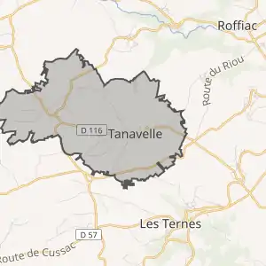 - Розташування муніципалітету Танавель на мапі Франції та сусідні муніципалітети