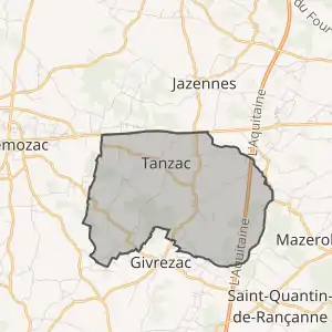 - Розташування муніципалітету Танзак на мапі Франції та сусідні муніципалітети