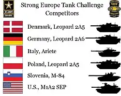 Змагання «Сильна Європа» — Strong Europe Tank Challenge 2020 року відбудуться 31 травня по 5 червня, у Німеччині, на полігоні Командування підготовки 7-ї армії США.[22] Організаторами змагань виступлять збройні сили США, Німеччини та Данії.[23]