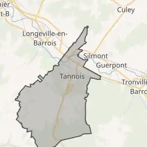 - Розташування муніципалітету Таннуа на мапі Франції та сусідні муніципалітети