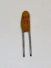 Більшість видобутого танталу у вигляді порошку використовується для виробництва електронних компонентів, переважно конденсаторів та деяких термостійких резисторів.[38] Танталові конденсатори використовують властивість танталу утворювати міцну та щільну оксидну плівку на поверхні. Танталовий порошок, спресований у брикет, використовується як одна з обкладинок конденсатора, оксид як діелектрик, та розчин електроліту або твердий електроліт як друга обкладинка. Оскільки шар діелектрику може бути дуже тонким, (тонший ніж, наприклад, у алюмінієвому конденсаторі), більша ємність може бути зосереджена в меншому об'ємі. Вага та розмір танталових конденсаторів є привабливою для мобільних телефонів, ноутбуків, та автомобільної електроніки.[39]