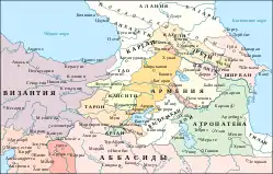 У роки правління Македонської династії та особливо в першій половині X століття — коли Візантією правили Лев VI, Роман Лакапін і Костянтин VII Багрянородний — візантійці розширювалися на схід, підпорядковуючи різних арабських еміратів. У цих походах візантійські імператори просили допомоги в іберійців (грузинів), які мали славу здатних воїнів, внесли свій вклад у військових походах та займали сусідні фортеці[52]. Костянтин VII Багрянородний у своїй роботі «Про управління імперією», що описує країни та народи, які межують з імперією, виділяє Херсонес, князівства Вірменії та Іберії серед васалів, що орієнтуються у своїй політиці на інтереси Візантії, але абсолютно непідконтрольні у внутрішніх справах[53]. Відносини з імперією не виходили за рамки своєрідного «союзу старших і молодших царств», що анітрохи не заважало грузинським політичним утворенням проводити досить незалежну політику, яка часто суперечила інтересам Візантії на Сході[43].