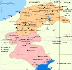 952 року візантійський імператор Костянтин Багрянородний у своїй роботі «Про управління імперією» писав, що межа між Візантією і Тао-Кларджеті проходила по річці Аракс[54][66] (приблизно з 949 року).