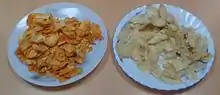 У Нагаланді та Мізорамі на північному сході Індії тапіоку їдять як закуску. Його зазвичай відварюють з невеликою кількістю солі у воді після її очищення, або закуски роблять сушкою тапіоки після її розрізання. Потім його присипають борошном і перетворюють на тісто, щоб зробити випечене або запечене печиво. У своєму місцевому діалекті вони називають це kuri aloo, що означає «деревна картопля». Ці чипси їдять усі групи суспільства як делікатес. Шкіру тапіоки, яка не їстівну для людей, використовують як корм для домашніх свиней.