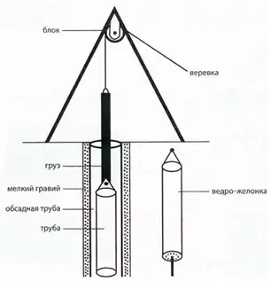 Схема черпання нафти в свердловині желонкою