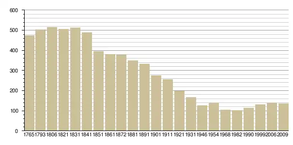 Динаміка населення (Baratier, Duby & Hildesheimer pour l’Ancien Régime ; Insee[3], EHESS[4] pour les chiffres issus des recensements légaux ):
