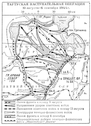 Тартуська операція проводилася протягом 10 серпня — 6 вересня 1944 року, здійснювалася силами 3-го Прибалтійського фронту, завданням наступаючих радянських військ була ліквідація німецького угрупування та зайняття міста Тарту.