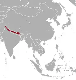 Країни поширення: Китай, Індія, Непал. Введений: Нова Зеландія, ПАР. Висота проживання: від 1500 до 5200 м. Мешкає на крутих скелястих схилах гір, особливо між 3000-4000 м над рівнем моря, з рідколіссям і рододендроновими чагарниками.