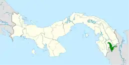 Вид поширений в південній частині провінції Дар'єн на півдні Панами та у департаменті Чоко на північному заході Колумбії. Мешкає у тропічних і субтропічних вологих вічнозелених лісах як у низинах, так і в гірських районах на висоті до 1500 м над рівнем моря.