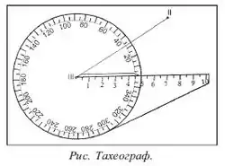 Тахеограф (рос. тахеограф, англ. tacheograph нім. Tacheograph) – транспортир з круговою шкалою і лінійкою, виготовлений на прозорій основі. Тахеограф використовується для нанесення на план точок знятих тахеометричною зйомкою.