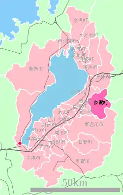 Містечко відоме великим синтоїстським святилищем Таґа тайся (多賀大社).