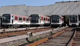 Як рухомий склад використовуються вагони 81-717/714 , 81-717.5/714.5, Еж3, Ем-508Т, Ема-502 і 3 вагони типу Е, в 2005—2010 роках пройшли модернізацію за чеським зразком, аналогічно вагонам 81-71 м, використовуваним в Празі. Модернізація включала в себе заміну електрообладнання, радикальну зміну салону і зовнішнього вигляду вагонів: на головні встановлювалася нові склопластикові маски, вагони перефарбовувалися в сріблясто-червоно-біле забарвлення.