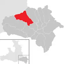 Комуна Твенг на карті округи Тамсвег. У лівому нижньому кутку показано розташування округи Тамсвег на карті федеральній землі Зальцбург.