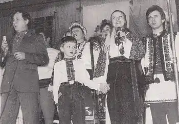 З письменниками Михайлом Івасюком, Віктором Косяченко, Іриною Вільде і Романом Іваничуком на святкуванні 100-річчя від дня народження Василя Стефаника в с. Русові