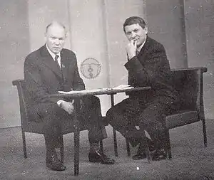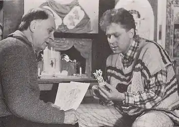 Режисер-постановщик В.Селезінка і художник-постановщик Г.Шкуренко за роботою над макетом до вистави "Лови на ловців С.Яричевського