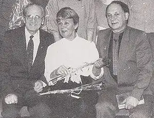 З відомою оперною співачкою, народною артисткою СРСР Марією Бієшу в клубі творчої інтелігенції м. Чернівців. Справа на ліво: А. М. Кушніренко, В. М. Селезінка, А. М. Добрянський