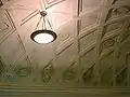 Колійні стіни і потужні пілони станції оздоблено світлим прохорово-баландінським мармуром. Спочатку підлога нагадувала шахову дошку, по жовтих і чорним плитах граніту, але у 1970-і жовті плити були замінені на сірі, що спотворило вигляд станції. Круглі мармурові стовпи з канелюрами на кутках пілонів, кришталеві світильники в бронзовій оправі надають центральній частині залу урочистий вигляд. Склепіння центрального залу прикрашено кесонами і майоліковими барельєфами на тему театрального мистецтва народів СРСР (скульптор М. Я. Данько, виготовлені на Ленінградському фарфоровому заводі). Значення їх для тематичного оформлення станції зросла при перейменування станції в «Театральну». У північному торці залу перебував бюст Я. М. Свердлова (скульптор А. П. Шликов), від якого залишився лише постамент.